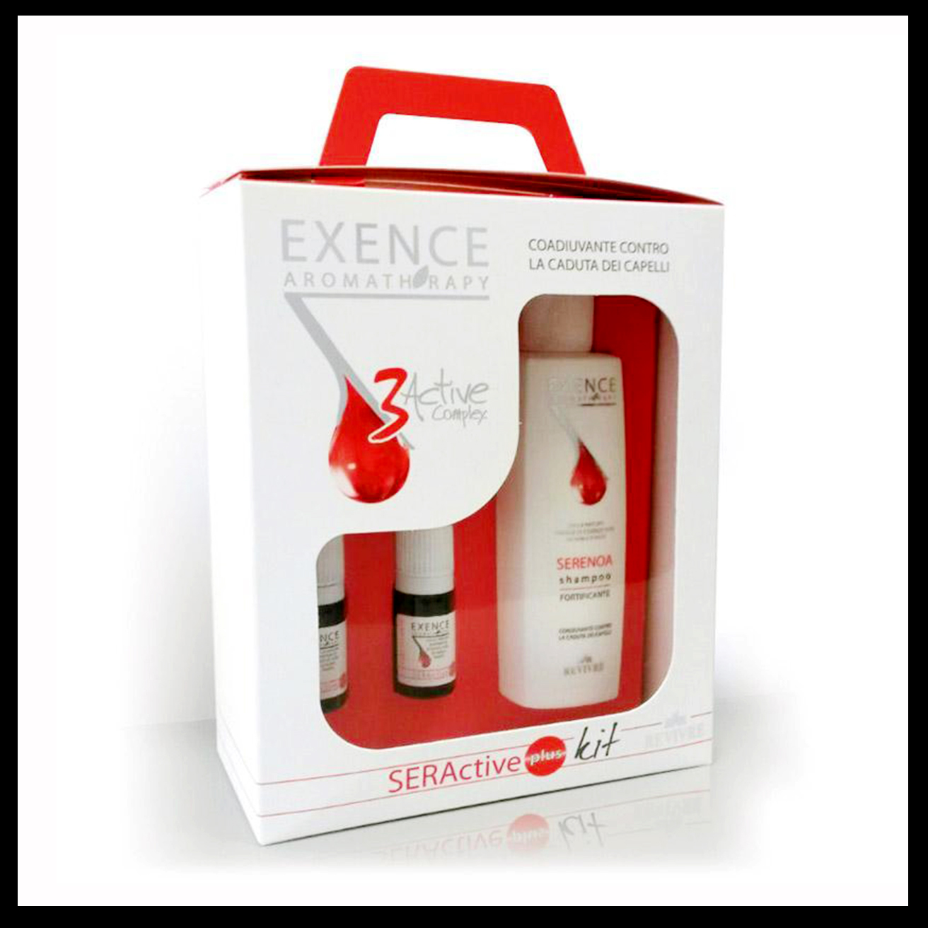 Serenoa Shampoo: Delicato shampoo, privo di SLES, contiene oli essenziali e Algaser Complex. I prodotti 3Active Complex consentono di eseguire programmi di mantenimento, dopo aver eseguito i tradizionali trattamenti Exence. In questo modo i risultati ottenuti verranno potenziati e mantenuti a lungo nel tempo.